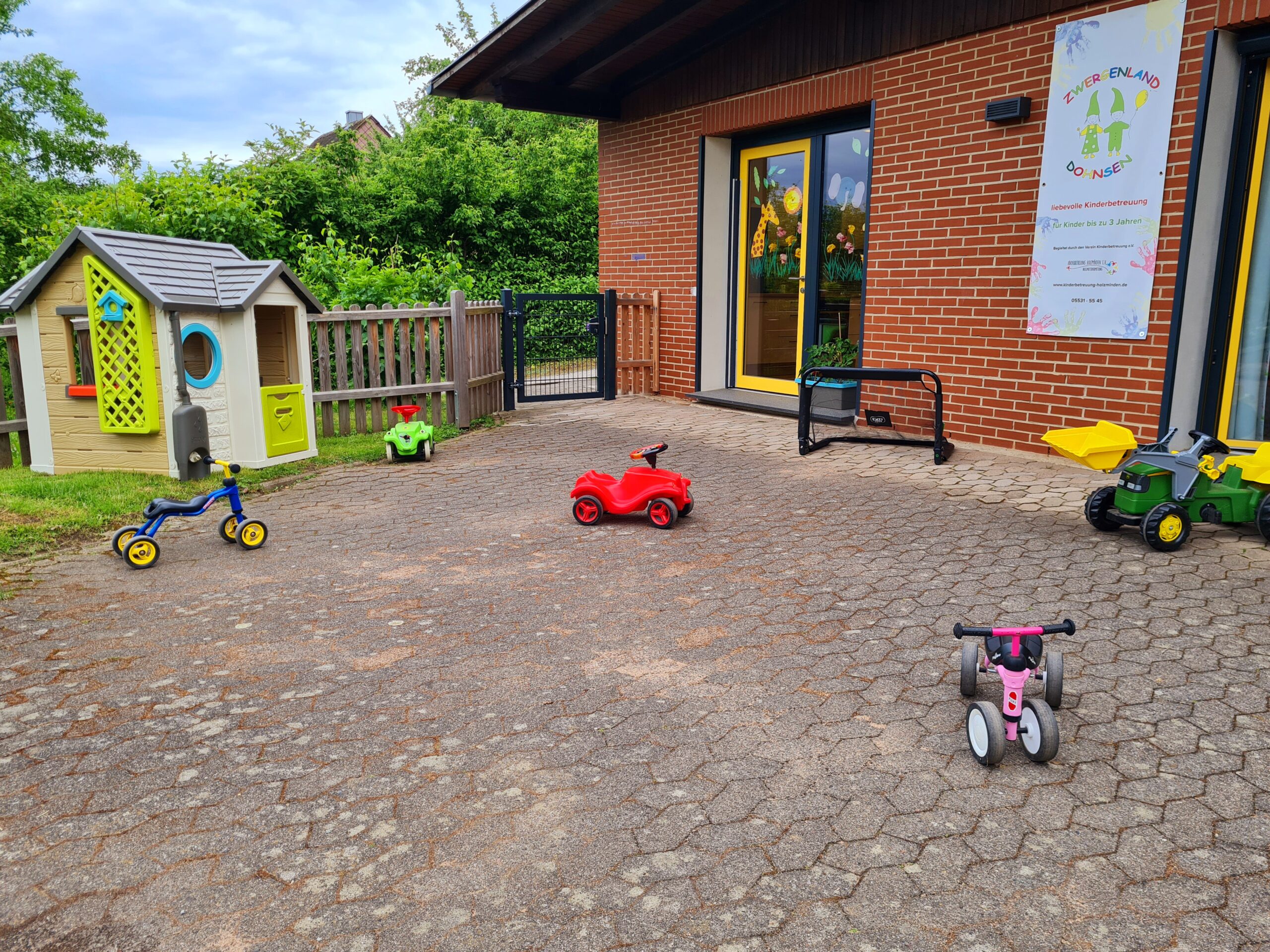 Unser Zwergenland wurde im Sommer 2020 in frisch renovierten und umgebauten Räumen der Gemeinde Halle eröffnet. Wir bieten einen schönen Gruppenraum mit integrierter Küche. Hier wird täglich frisch gekocht. Es gibt einen Bauteppich, eine Leseecke, eine Kinderküche, Bücher, Spiele und vieles mehr. Außerdem haben wir einen Ruheraum für den Mittagsschlaf, der aber auch zum Spielen genutzt werden kann. In der Garderobe hat jedes Kind seinen eigenen Platz und der kindgerechte Waschraum bietet eine kleine Kinder-Toilette, sowie einen Wickeltisch, den die Kinder eigenständig über eine Treppe „erklimmen“ können. Die Räume grenzen direkt an die Mehrzweckhalle, die wir zum Toben und Turnen nutzen können. Außerdem haben wir ein schönes Außengelände zum Spielen.